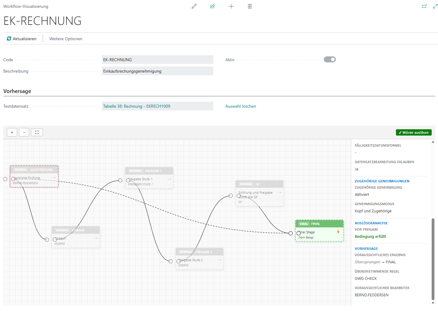 - Die Visualisierung zeigt daraufhin den voraussichtlichen Pfad des Workflows: