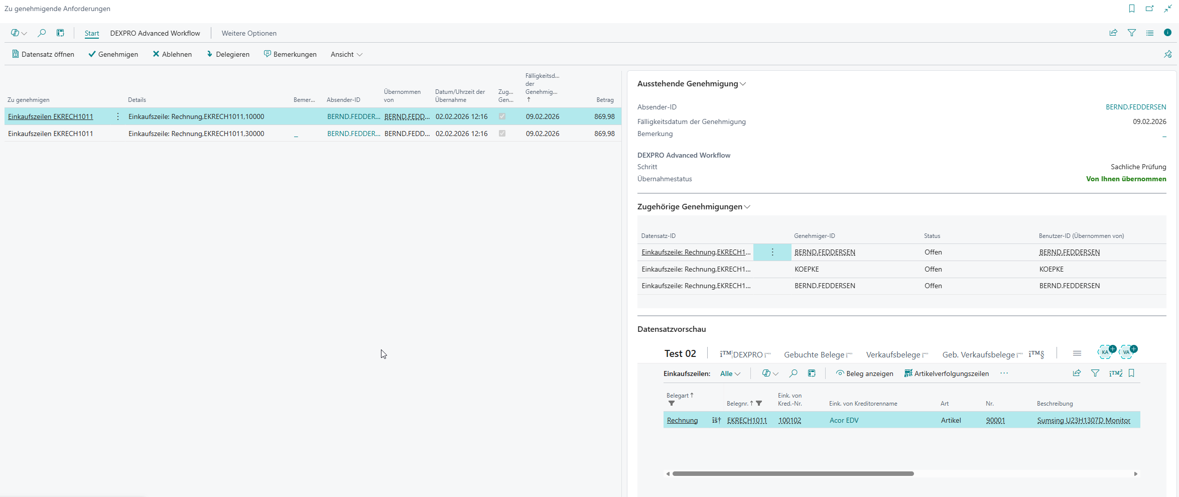Ziel: Sie können Genehmigungen auf Zeilenebene abbilden, ohne dass die gesamte Bearbeitung ausschließlich am Belegkopf stattfinden muss.