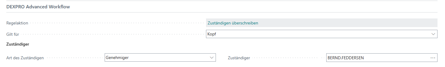 Advanced-Workflow Felder auf der Regel pflegen (Nächster Schritt, Automatisch Genehmigen, Zuständigen Überschreiben)