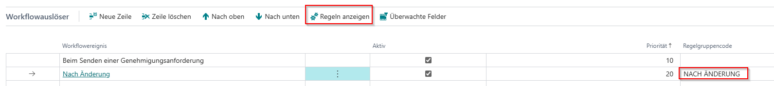 Im Auslöser gibt es Regelgruppencode. Über die Aktion „Regeln anzeigen“: