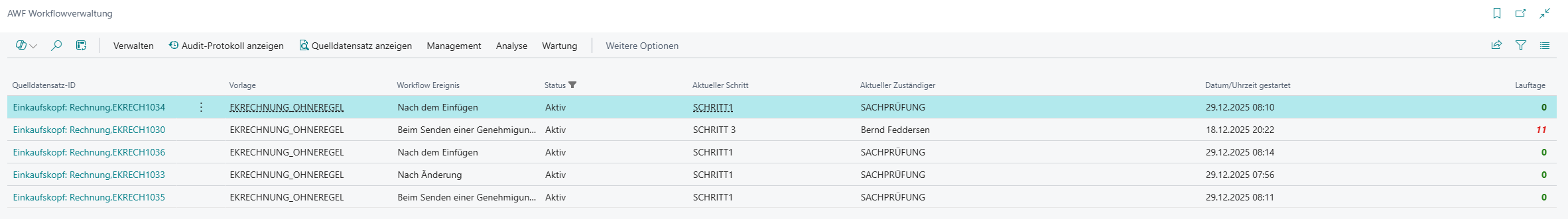 Öffnen Sie AWF Workflowverwaltung (z. B. über „Genehmigungen & Workflows“ → „Advanced Workflows“).