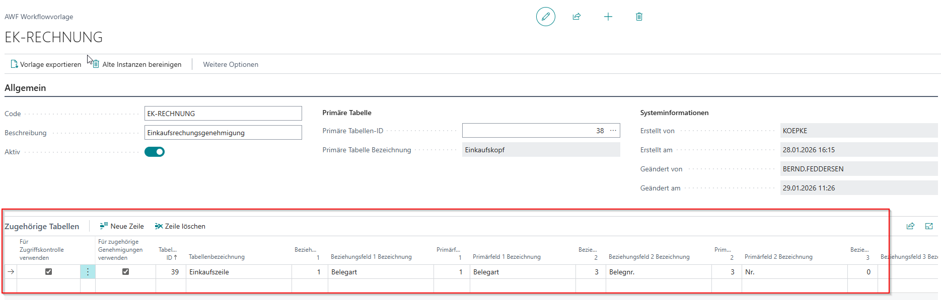 Diese zugehörigen Tabellen definieren Sie in der Vorlage im Bereich: