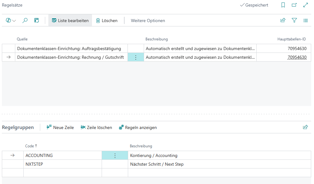 Hier finden Sie alle bisher angelegten Regelsätze und deren Ursprung, sowie deren Verwendungsort.