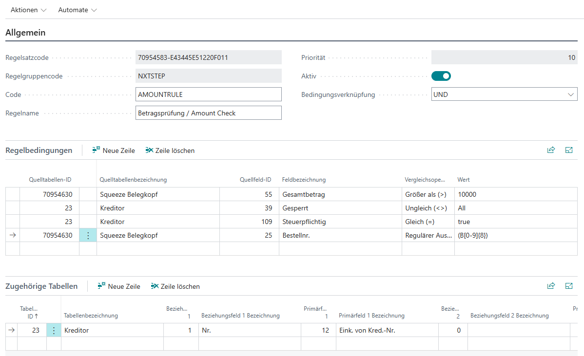 Hier können Sie Bezüge von weiteren Tabellen zur verwendeten Quelle einrichten, so dass deren Felder mit in den Regelbedingungen genutzt werden können.