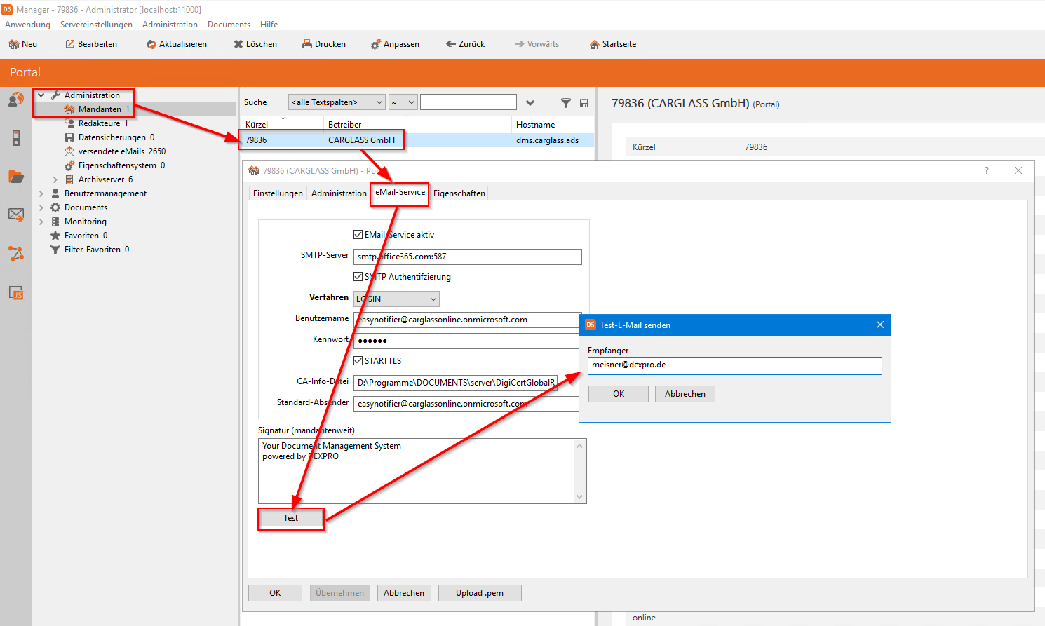 Dexpro hat das neue Zertifikat heruntergeladen und am Server hinterlegt.