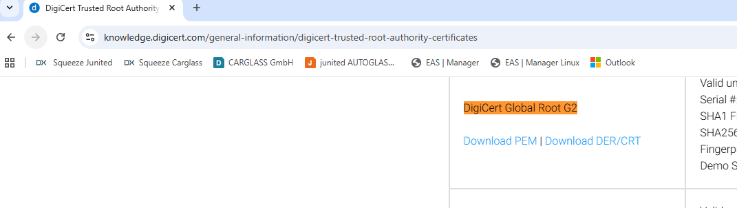 Neu: "DigiCert Global Root G2"