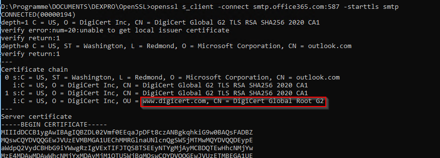 openssl s_client -connect smtp.office365.com:587 -starttls smtpC = US,