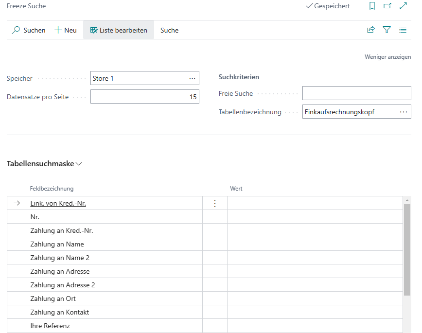 Die Freeze Suchmaske ist eine Volltextsuche.