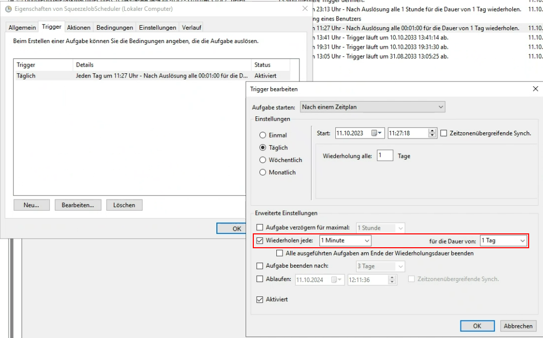 - Wiederholen jede 1 Minute für die Dauer von 1 Tag