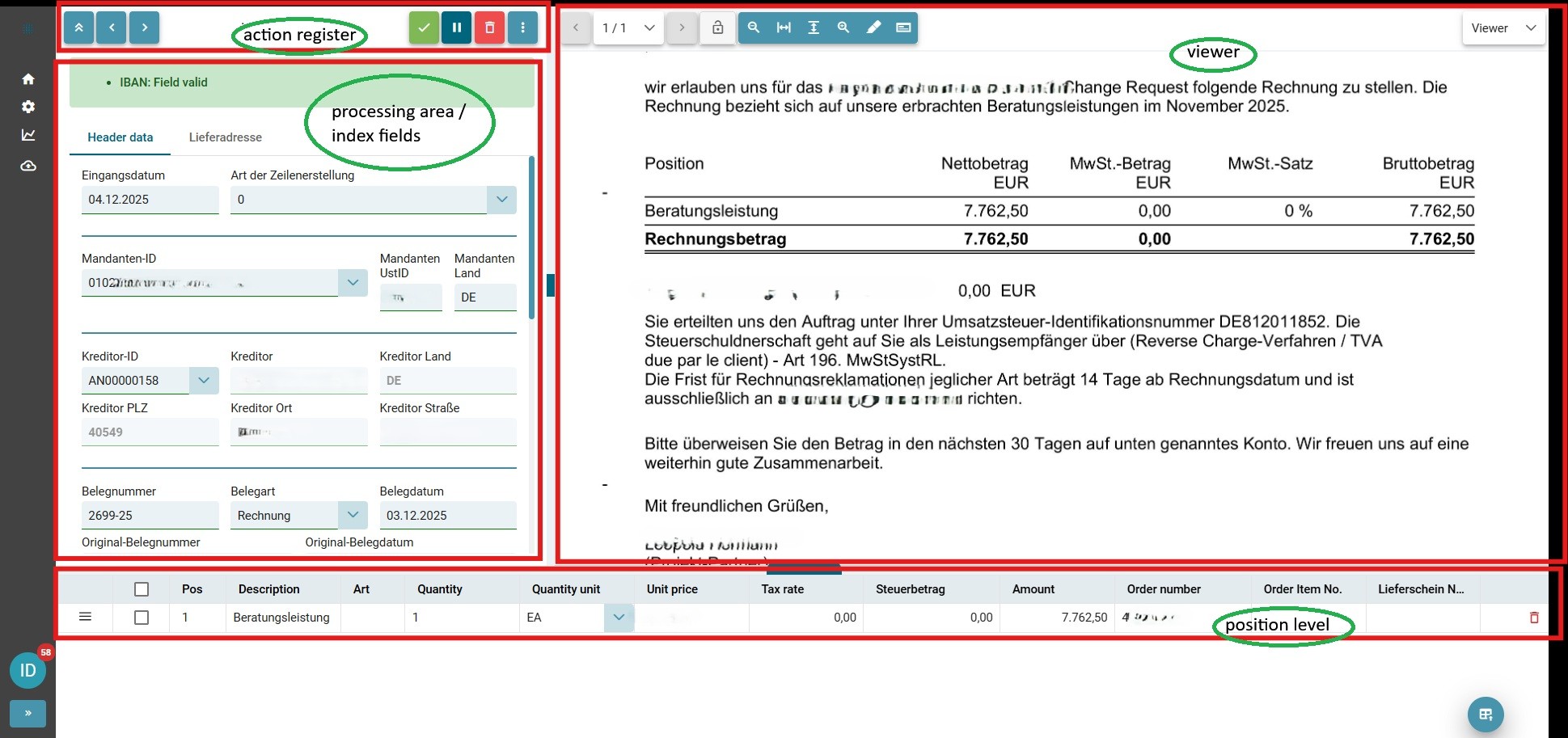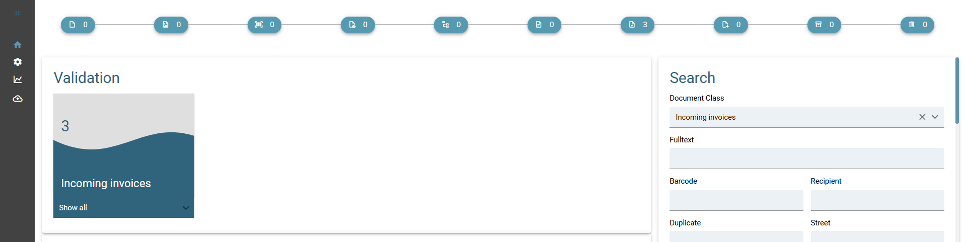 "Validation" takes you to the main work area of the application. Here, the user checks and confirms the documents that have been read. Validation can be opened via the Squeeze item in the tab bar.