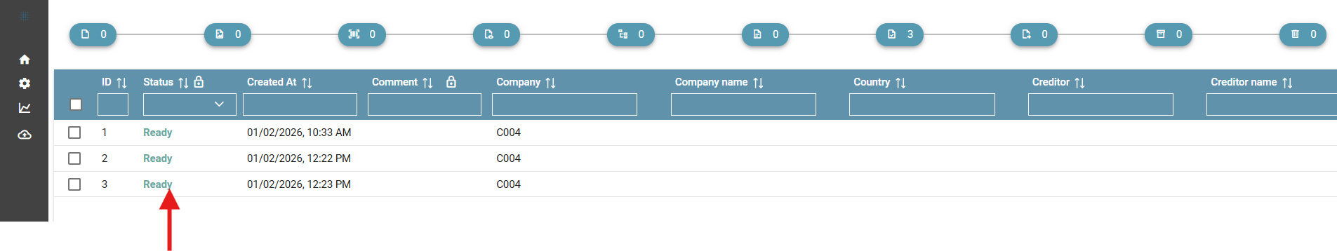 A new page opens showing all documents that Squeeze has processed so far and which now need to be validated, i.e. confirmed or corrected by the user.