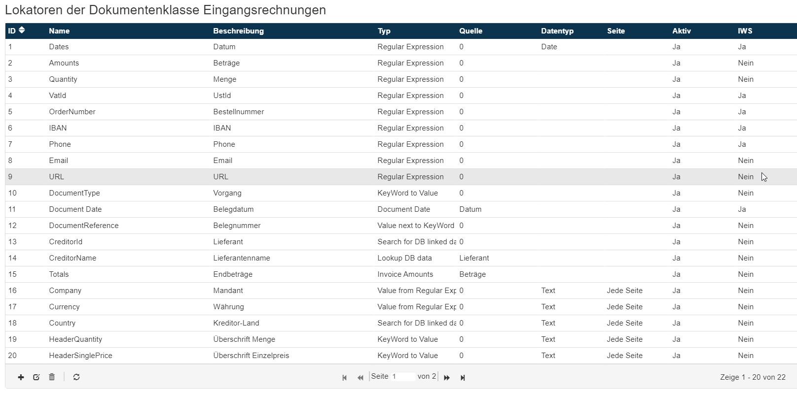 | Invoice Amounts | Lokator für Beträge (numerisch mit 2 Nachkommastellen) |