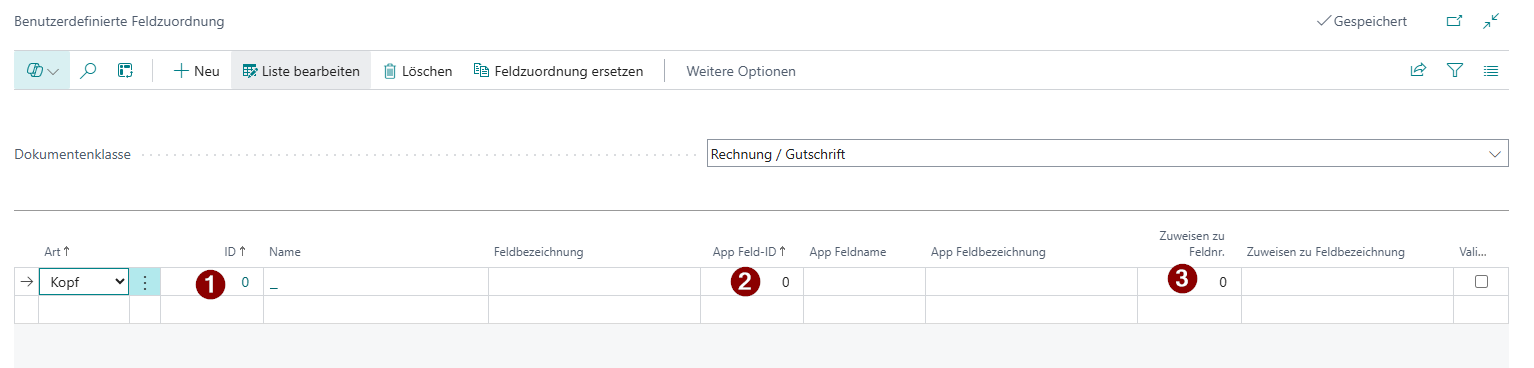 In der Dokumentenklassen-Einrichtung die Feldzuordnung öffnen: