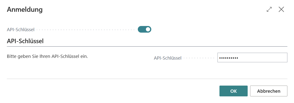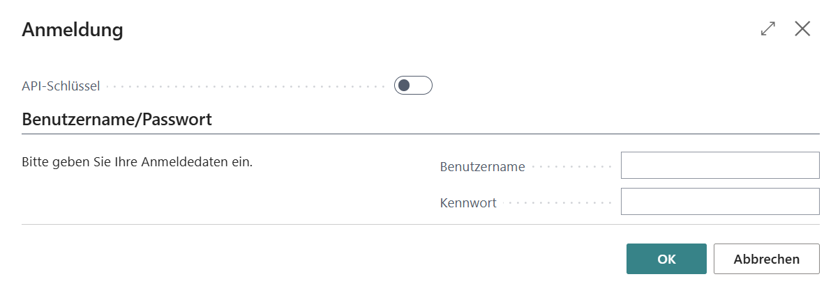 Über die Schaltfläche "API-Schlüssel" können Sie zwischen den Anmeldeoptionen wechseln.