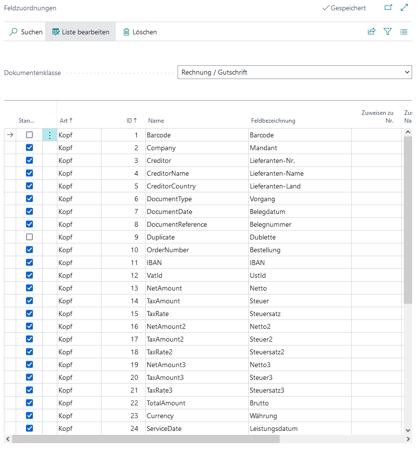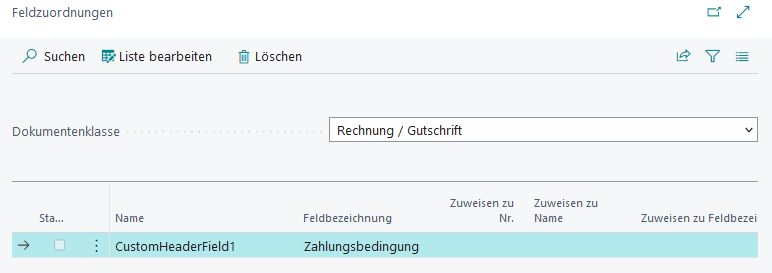 In der Metadaten Zuordnung wird die Feldzuordnung jeder Dokumentenklasse heruntergeladen und so ein Set an Standard Feldern und deren Verwendung in Microsoft Dynamics 365 Business Central hergestellt.