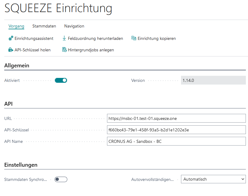 In der SQUEEZE Einrichtung wird sowohl die Anbindung an das SQUEEZE System, als auch die Verarbeitung innerhalb der App eingerichtet.