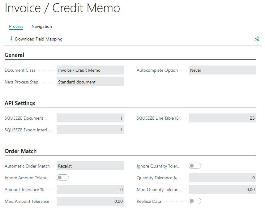 document class and your export interface. Furthermore, the field mapping of each document class is downloaded here, creating a set of standard fields and their usage in Microsoft Dynamics 365 Business Central.