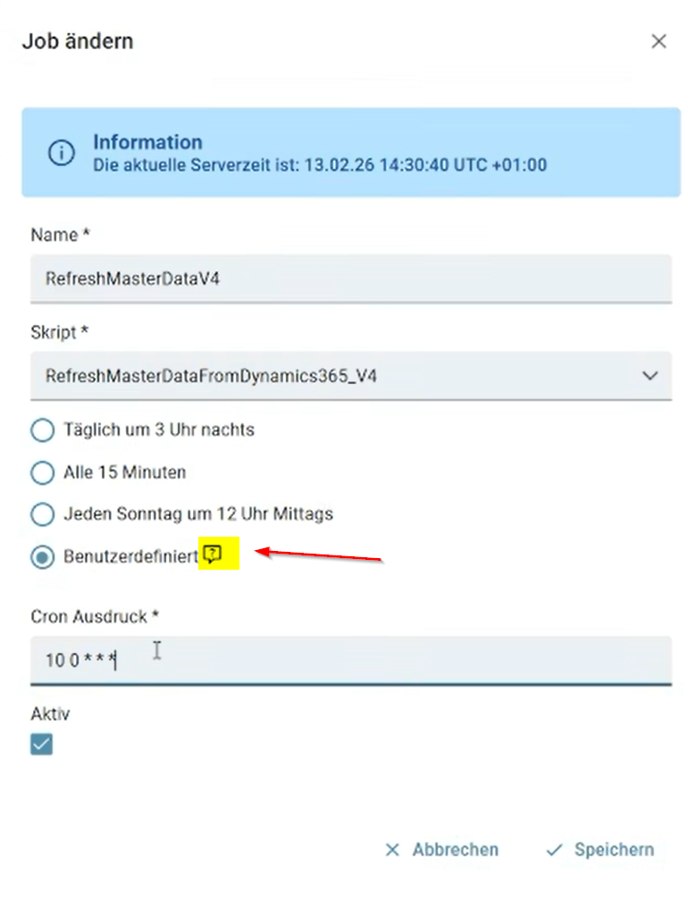 Um zu erfahren, was der Cronjob Ausdruck bedeutet, kann man auf „Bearbeiten“ gehen: