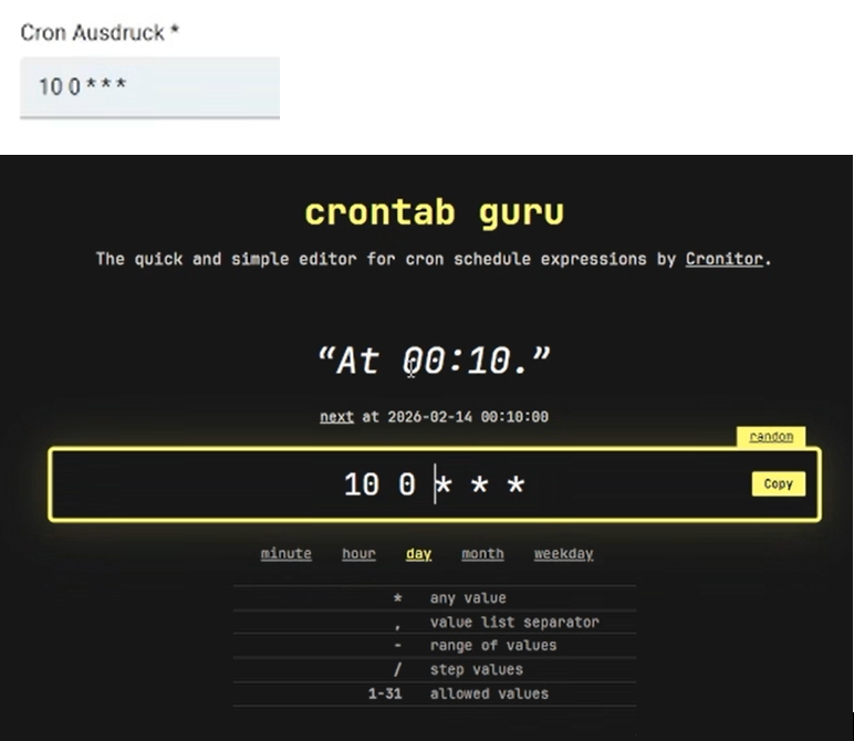 D.h. der Cronjob läuft um 00:10 Uhr.