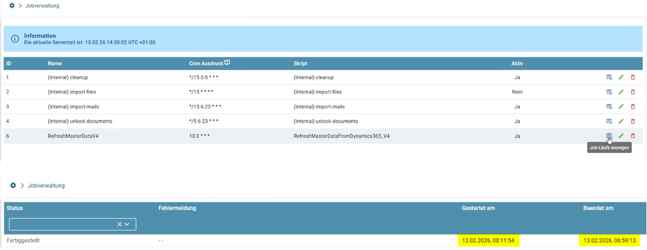 D.h. um 4:30 Uhr ist der Job gelaufen. (Frage: Start oder Ende?? und wie ist die Dauer?)